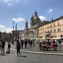 正面にあるサンタ・アニェーゼ・イン・アゴーネ教会、そして広場にある3つの噴水が美しい景観をなしていると思いました。