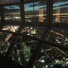 タワー自体が照明をどんどん変えていくので反射するカラーで展望台内はとても幻想的です。