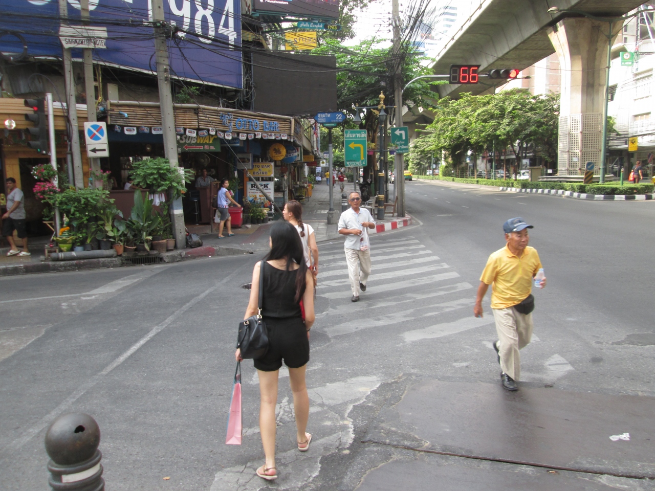 交通量が多いスクムウィット通りには待ち時間表示付きの信号機が多いです。歩行者にとっても非常に分かりやすかったです。渋滞を少しでも緩和できるように、ドライバー、歩行者のストレスをなくす配慮がなされていました。