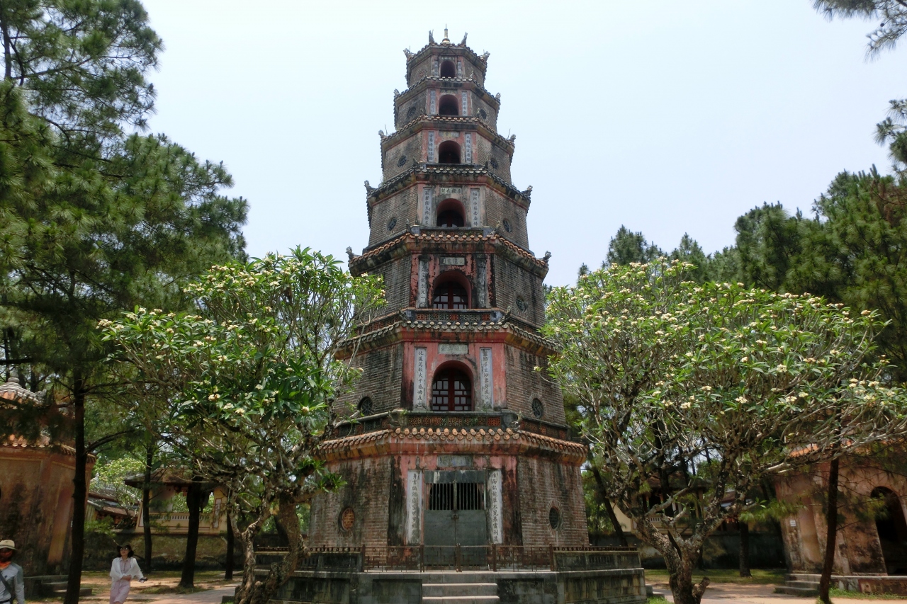 旧市街地阮朝王宮のから少し外れたフォーン川沿いに建てられてある寺です。