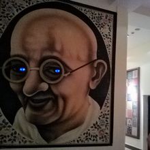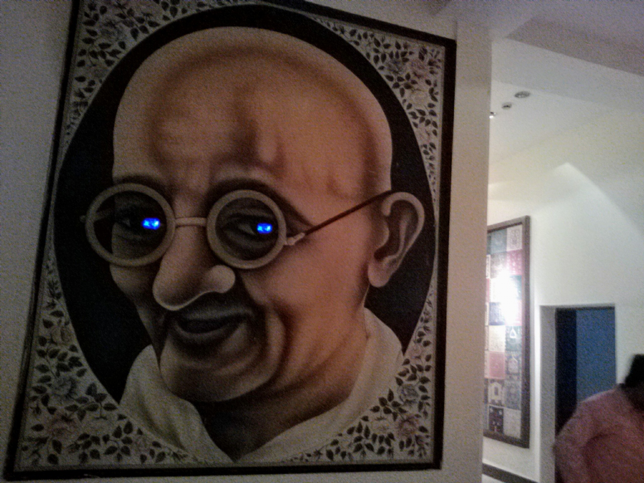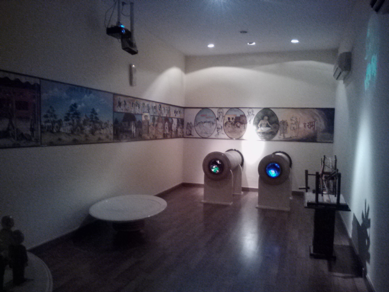 真面目な博物館だと思っていましたがいささか疑問符が付きます。入口入って左手にある白い建物にもガンジーに関する展示がなされているのですが1階はいいとして2階がぶっ飛んでいます。「マルチメディア ミュージアム」と名付けられていてここがすごいことになっています。ガンジーをモチーフにして映像やモニターを駆使した展示がされているのですが内容が前衛的過ぎて意味不明、理解不能です。なぜこんなことになっているのかまったくの謎です。