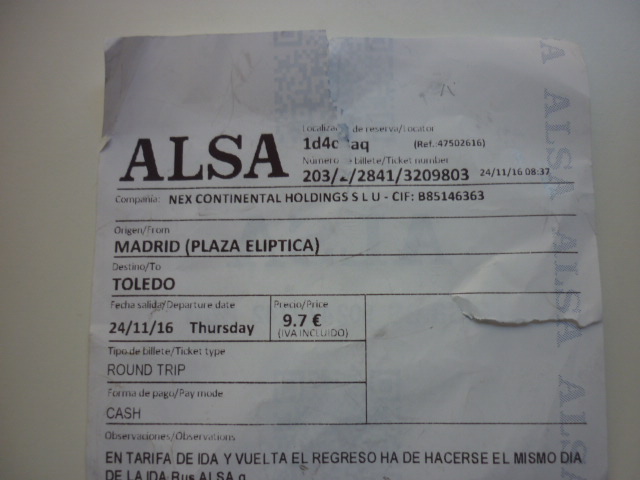 娘と二人でPLAZA ELIPLITCA駅からバスで行きました。行きは、終点から、バスでトレドの町まで上がり、帰りは、エスカレータで降り、徒歩7分程度でバス停まで行きました。トレドには、合計2基のエスカレータがあるようですが、なぜか、このバス停に近いエスカレーターの場所がどの地図や口コミにもなく、下調べが大変でした。グーグルにも載っていません。トレドは行く価値充分でした。