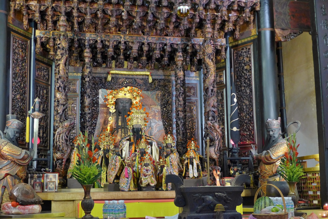 北極星の化身とされる玄天上帝が祀られているそうです。北を表す黒い柱が重厚な雰囲気を醸し出していました。