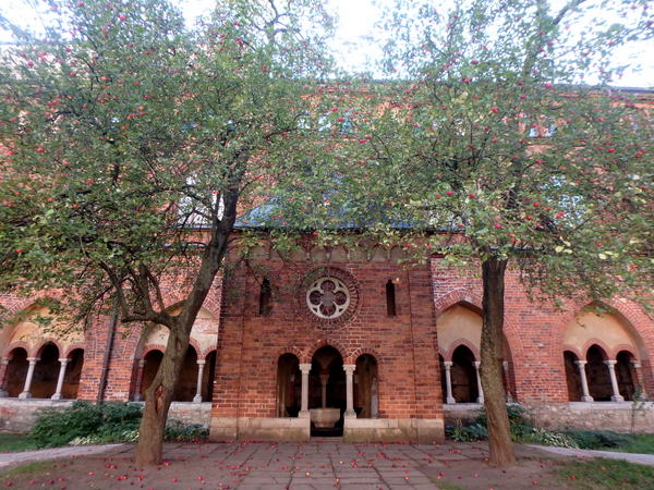青い空に緑の木々に赤いレンガの回廊が美しかったです。