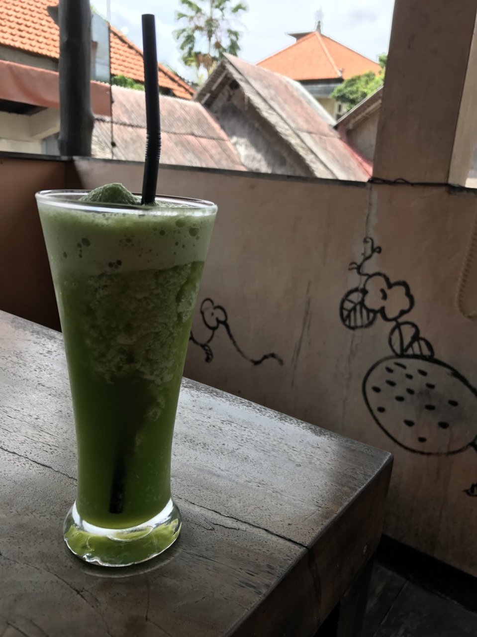 ベジタブル(野菜の素揚げ)カレーとレモンミントスムージーを頂きました。