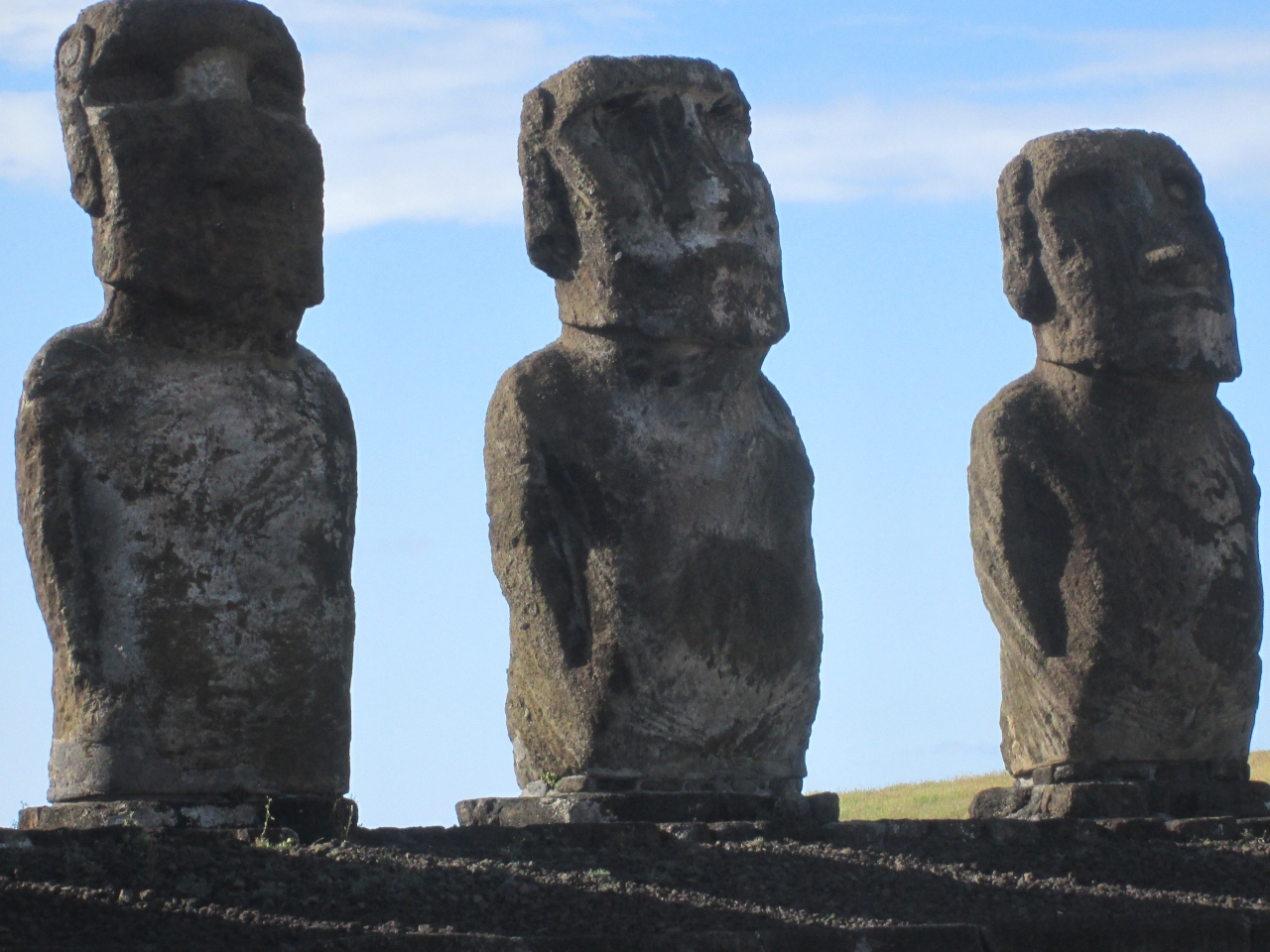 アフ・トンガリキには15体のモアイ像が並んでいて見ごたえがありました、アナケナビーチ沿いには7体のモアイ像があるアフ・ナウがあり、ハンガ・ロア村から歩いて行けるタハイ儀式村のモアイ像は7体ありそれぞれのモアイ像を見ました。