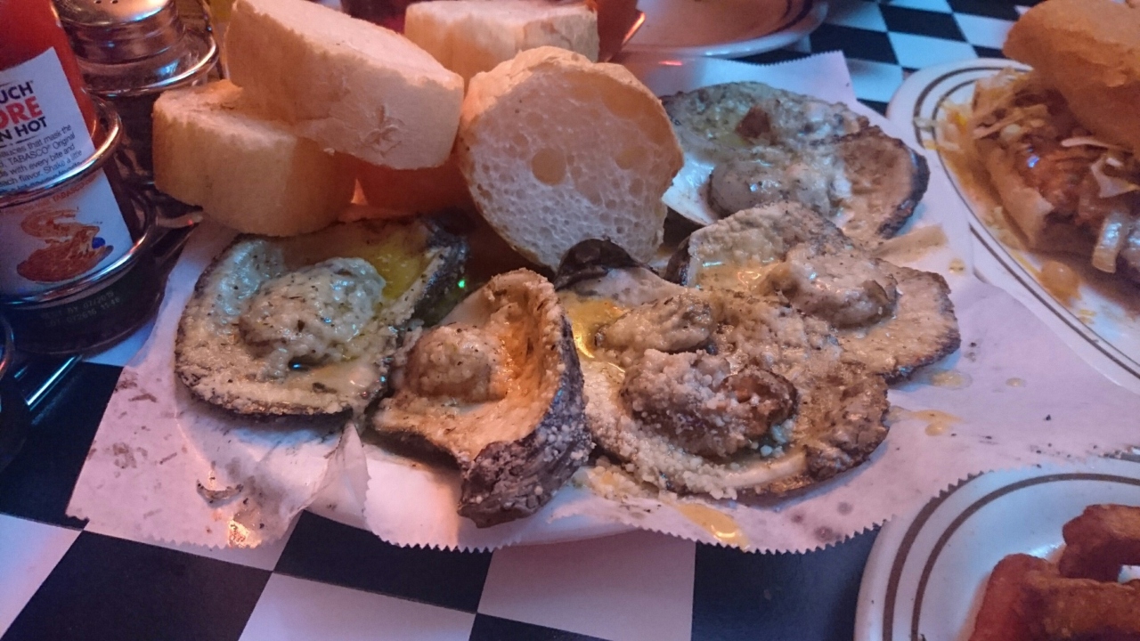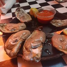 ダンナと娘で、生ガキのハーフと、オーブンで焼いたカキのハーフを注文