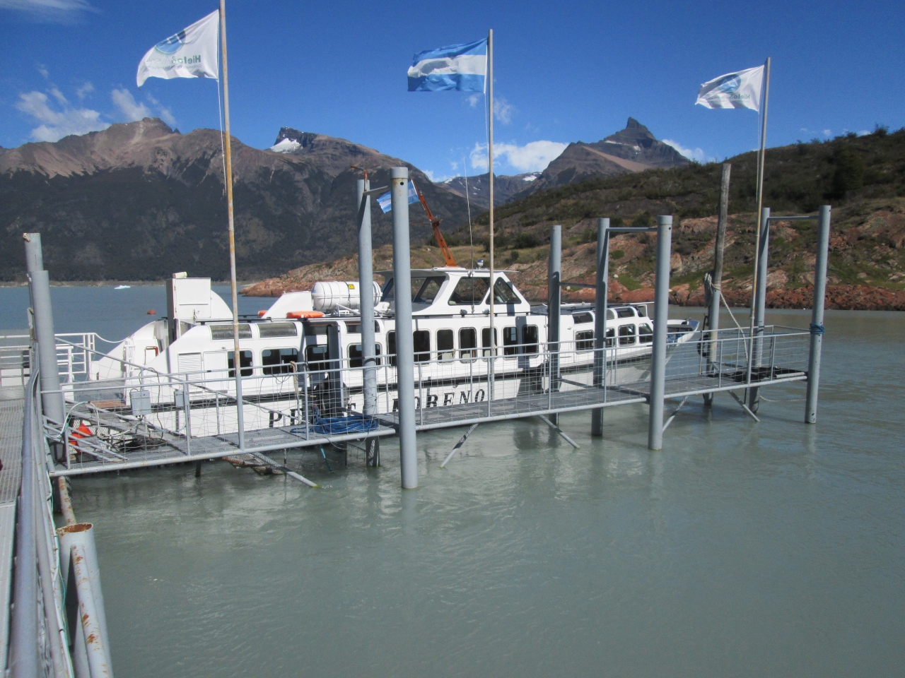 南部パタゴニアにあるロス・グラシアス国立公園のペリトモレノ氷河観光するとき利用しました、小さな船の発着場という感じでした、ここから観光船に乗船して氷河トレッキングの観光に出ました、一応トイレがある観光船で、他にも小さな観光船・氷河を見るクルーズ船が停泊してました、時間帯によっては多くの観光客が港周辺に多くいます。