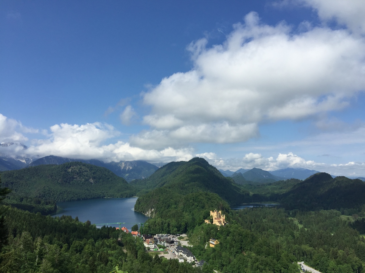 ノイシュバンシュタイン城のチケットを一ヶ月前にネットで事前予約したが、予約をしなくても朝10時に到着した人が12時台のチケットを購入できたとのこと。中はまぁまぁって感じで高いお金を払ってまではいいかなという印象。しかし城内からマリエン橋や城の周辺が見渡せるなどのメリットはある。チケットセンターからノイシュバンシュタイン城までの行きはきつい坂道を歩くと40分くらいかかり体力消耗するので行きはバス利用を強くお勧めしたい。帰りは下り坂なので楽に下りてくることができた。フュッセンから自転車で20分、徒歩1時間。自転車利用をしたが気持ちよく道中に見えるノイシュバンシュタイン城を写真撮影しながら楽しめた。