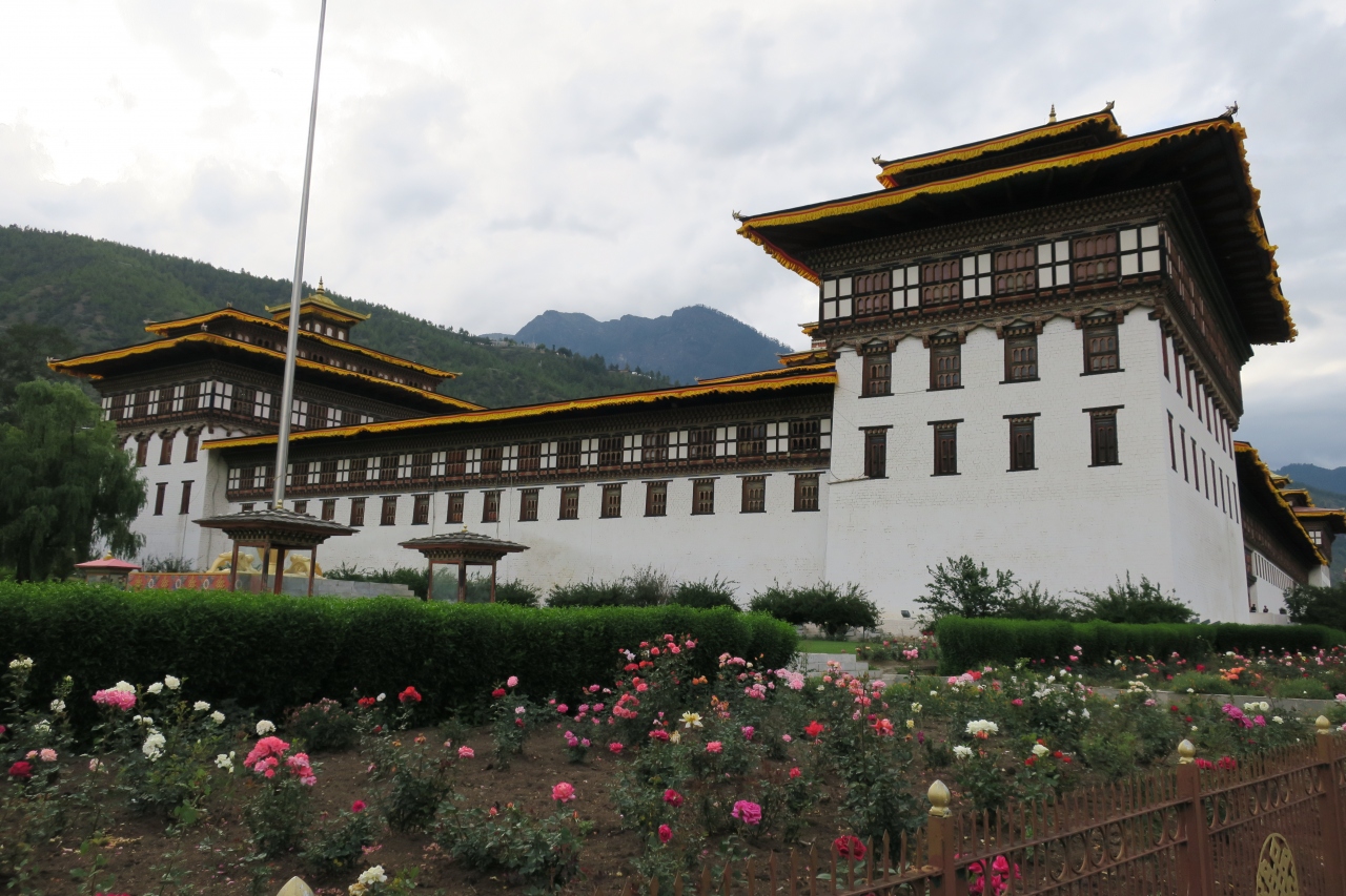 ティンプーの観光のメインスポットのひとつ。大きくて圧倒的な存在感の建物には、いまでも国王、宗教界の最高指導者の座所でもあるそうです。そのため、入る際に荷物検査がありました。通常の公務が行われいているため、入場できる時間に制限があり、一時に観光客が集中するため、かなり混雑します。オープン前は、入場待ちの行列ができるほどでした。でも建物は立派で、装飾も見事、見応えあります。