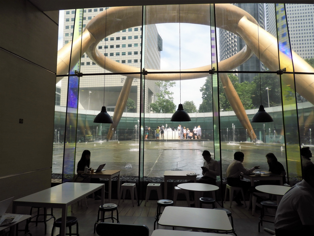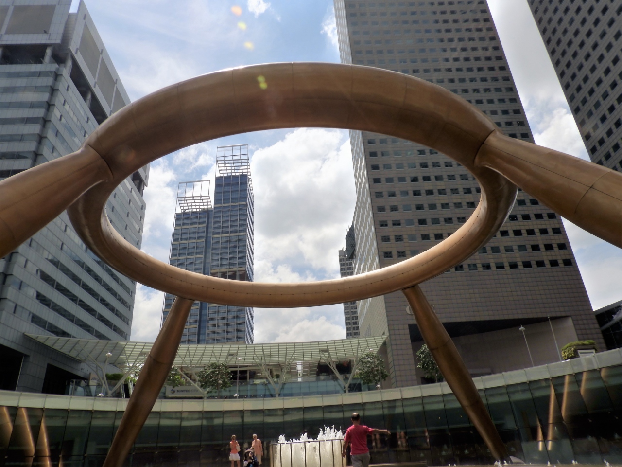 最初は地下で見ていましたが、地上に出る出口がなかなか見つかりません。半周ぐらいしてようやく地上へ、こんな大きな物を風水で造るとは、取り囲む5つのビルも手に見立てた風水、シンガポールには風水由来の建造物が多いです。