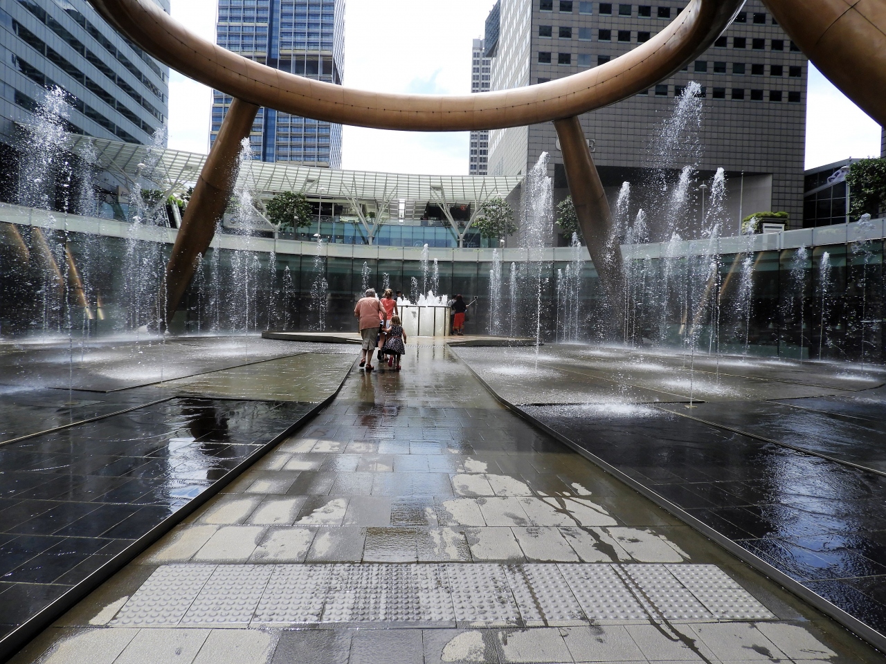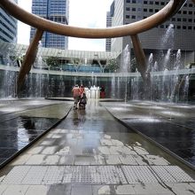 見たときにちょうど噴水が止まる時間だったのか二十人ぐらいの人がいましたが、突然勢いよく噴水が吹き出し水浸しになっていました。
