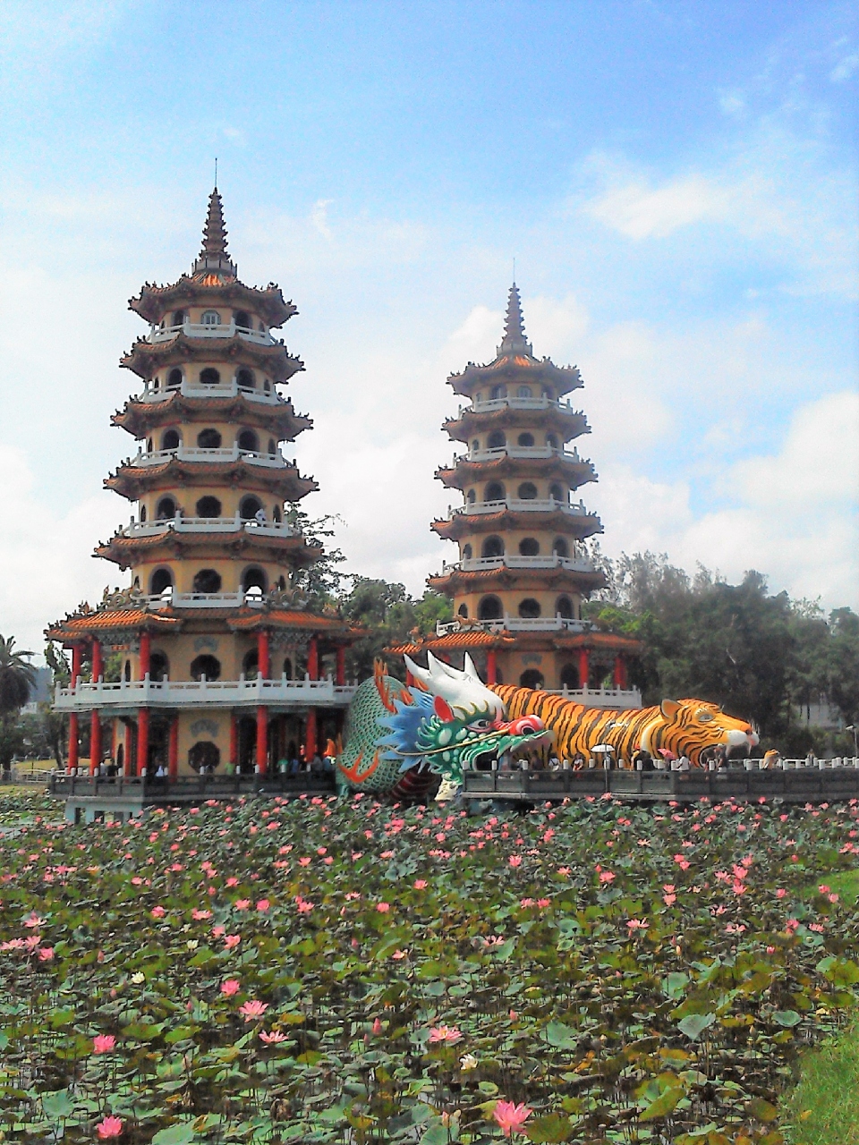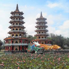 季節を選んだので!!、沢山の蓮が咲いてる[蓮池潭]に来ました(この前は蓮が葉っぱのみでした)。蓮の花は岸辺一面に咲き誇っており池の水面が見えませんでした(^^) 池の蓮は`龍虎塔`とマッチして両方共に景観になりました(普通は龍虎塔がメインで池はサブ?です)。