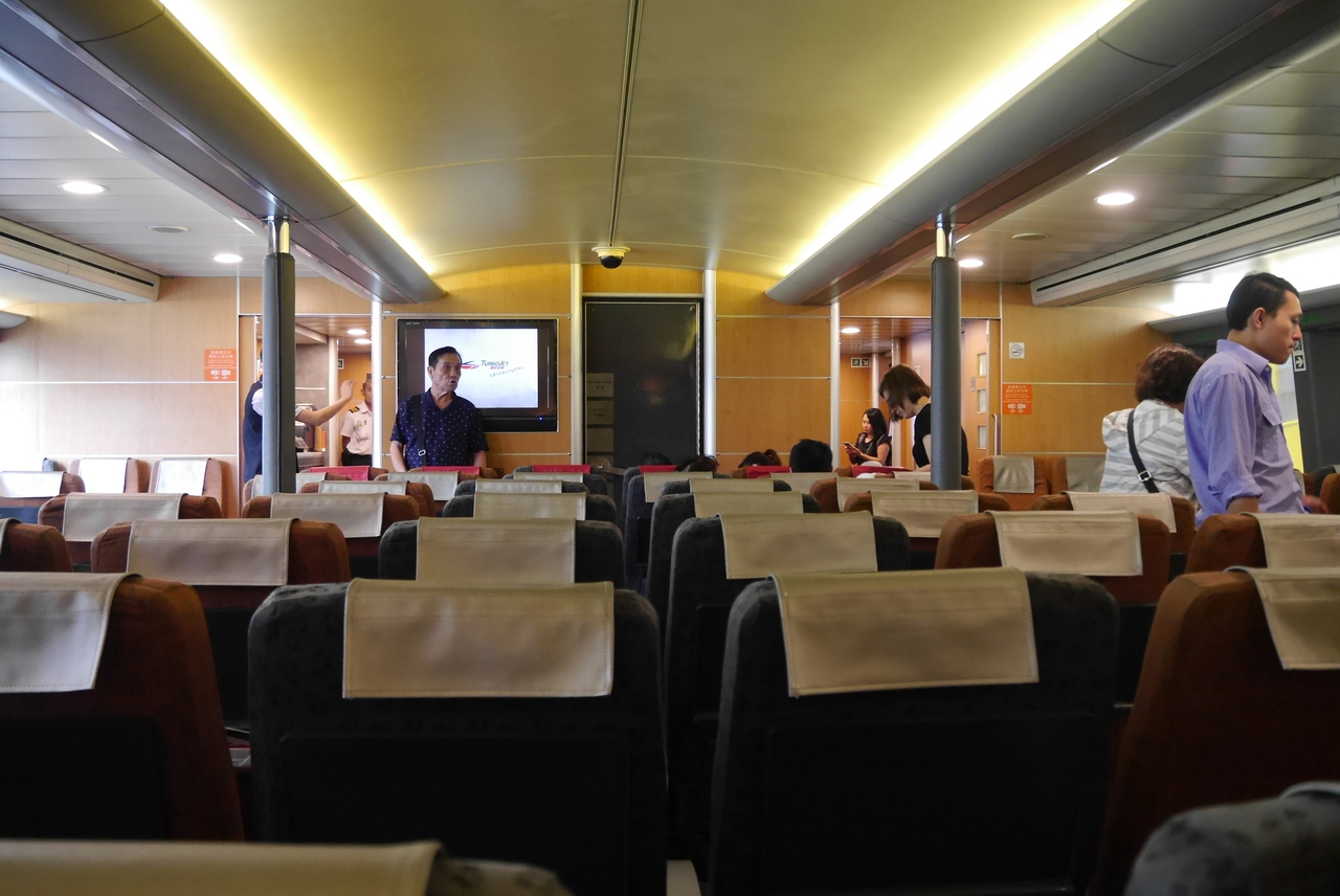 フェリー内はクーラーが効いてて寒いので、上着を持って行った方がよいです。
