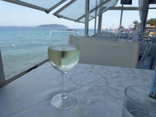 窓いっぱいに夏の海が広がり、素晴らしい。
