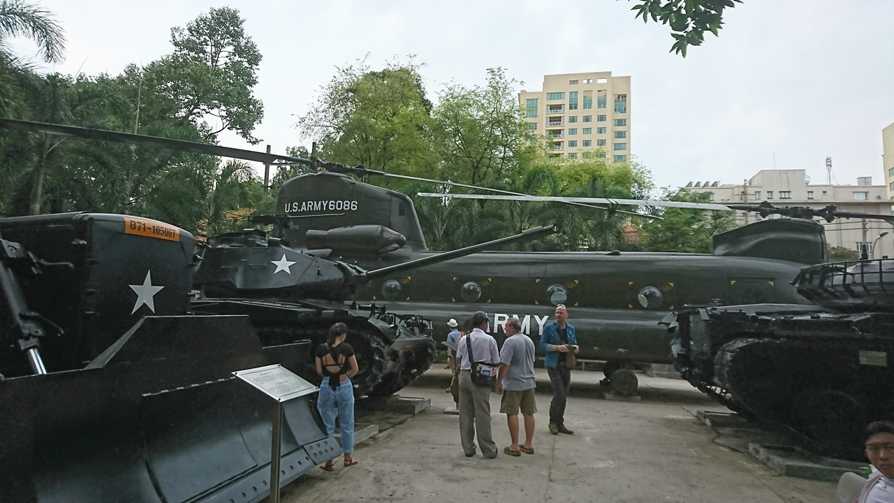 外には戦車や戦闘機、ヘリコプターなど飾られていて、3階にベトナム戦争の枯れ葉剤の影響の写真などが飾られています。3階の日本人の撮った写真などの一部のものしか日本語の説明はないですが、原爆ドームなどと同じで気持ちは下がりますがやはり戦争の悲惨さなどを感じる場所としてホーチミンではやはり一番訪れる場所だと思いました。でも欧米の方もいっぱいいて、結構混んでいるのであまりゆっくりと見れる感じではなかったです