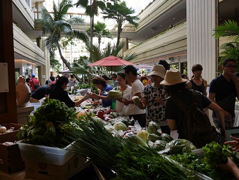 ハイアットリージェンシーの1階部分で開催されるファマーズマーケットですが、毎週木曜日の4時から8時まで行われています。出てる店は殆どがカットフルーツ・野菜サラダ・パン等ですが、ソープやアクセサリーなど小物類の店も数店出ていて結構楽しめます。今回はカットフルーツとサラダを購入、終了間際だと3ドル・3ドルで6ドルの所5ドルになります。