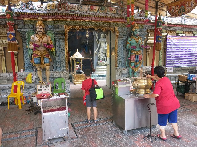 色彩豊かなヒンドゥーの神さまたちの前で、こちらもお線香を備える参拝者がいらっしゃいました。