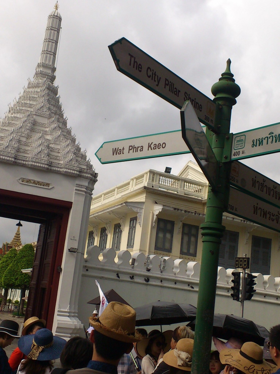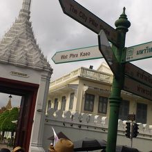 ワットプラケオの観光客の出入口の白い門です。ここまでたどり着く途中に、手荷物検査があります。そこを過ぎて行くと右側にあります。開場は8時半で、そん時間には門の前の道の反対側に人だかりができていました。時間になると一斉に観光客が中に入って行きました。