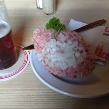 つまみは「Mettbrötchen」という生の豚挽き肉をパンに乗せたもの。生の豚肉と言うと拒否反応があるかもしれないが、ドイツの豚肉処理は厳格らしいのでそれを信じて注文。結果さっぱりとした味で美味。勿論体調も問題無かった。
