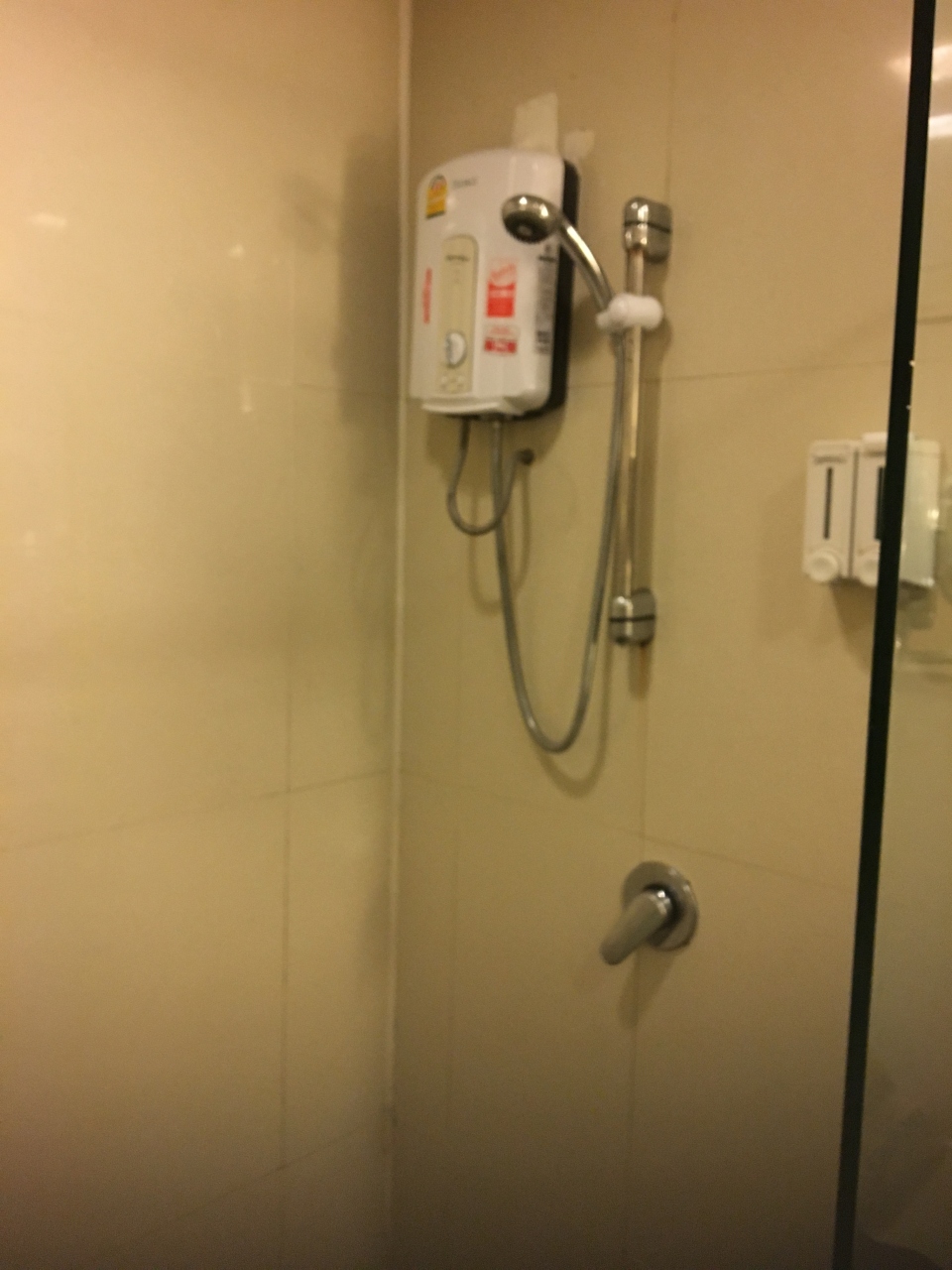 男性用は2室あります(女性用はわかりません)。湯沸かし器が壁に備え付けてあるアジアによくあるやつです。今回使った方は壊れていたようで熱湯か水かの極端で、熱湯から水に変わるわずかの間に浴びざるを得ませんでした、残念。シャンプーは備え付けがあります。外からは誰でも入れてしまうので内側から鍵は必ずかけましょう。