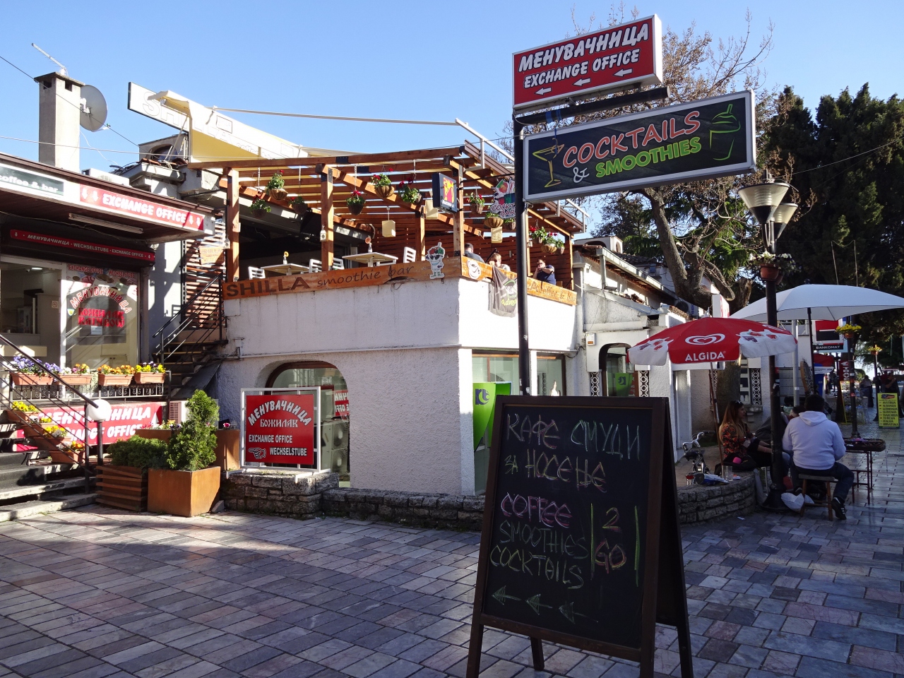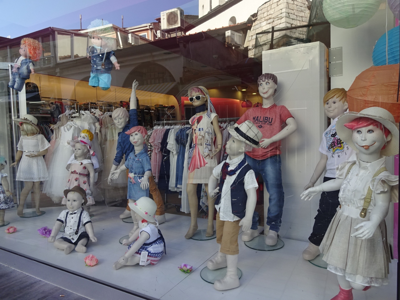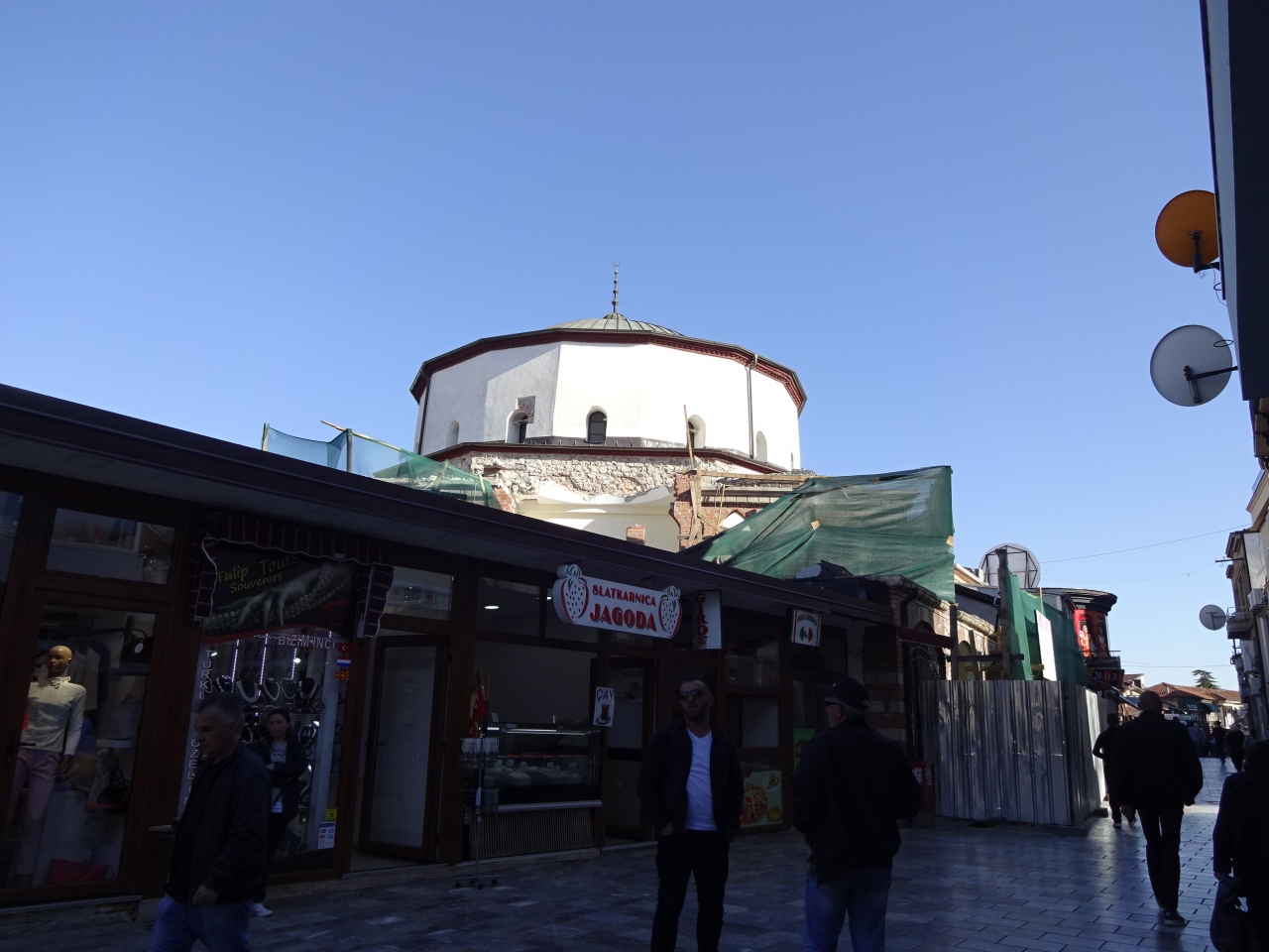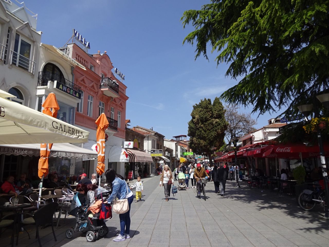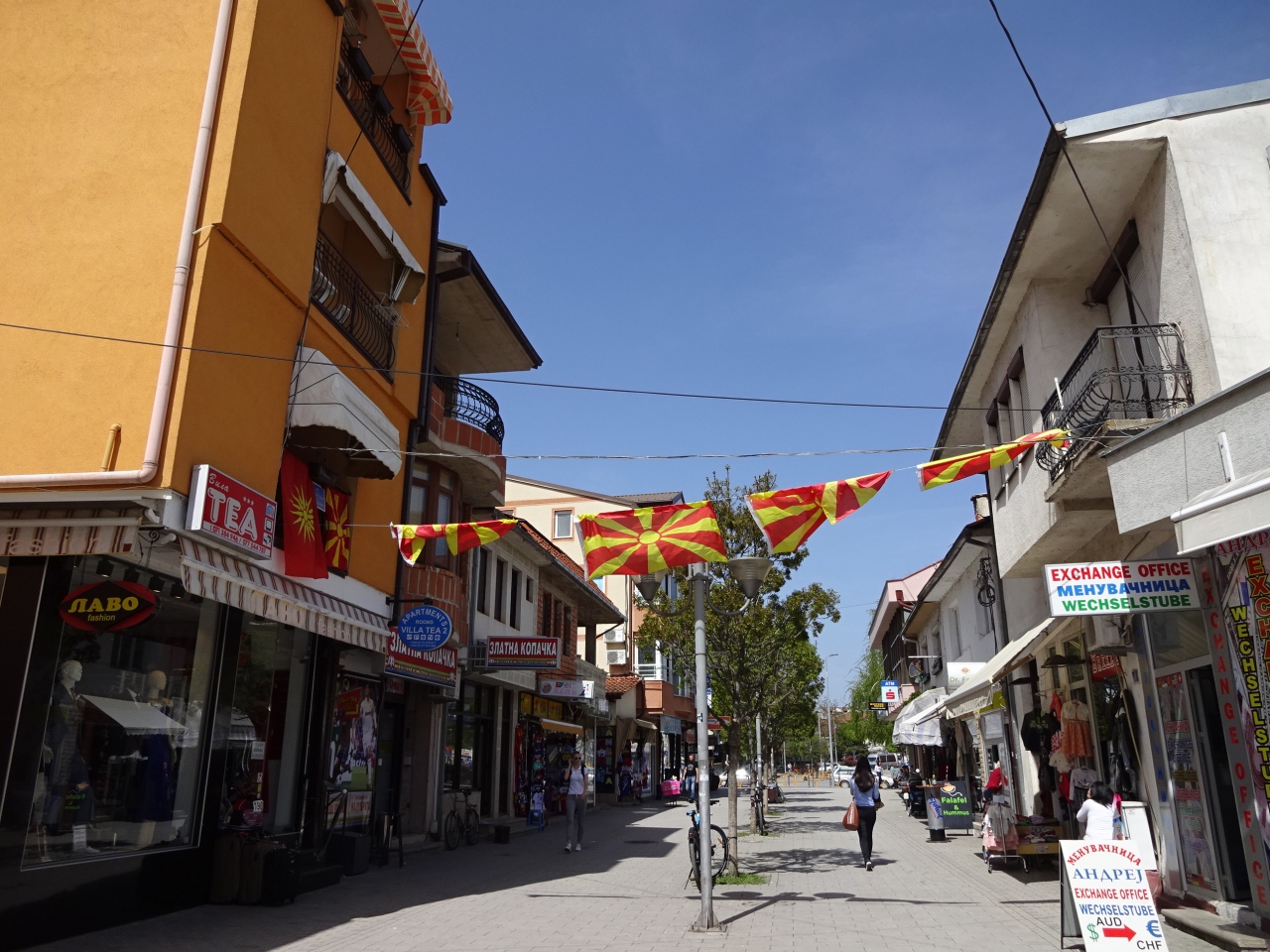 オフリドの中心部にある歩行者天国の通りです。オフリドいち観光客が集まる通りでもありますが、どちらかというと地元の人のためのお店が多く、商店街のようでした。写真館、服屋さん、玩具屋さんなど…特に服屋さんは変なマネキンがあるお店が多く面白かったです。
