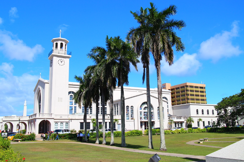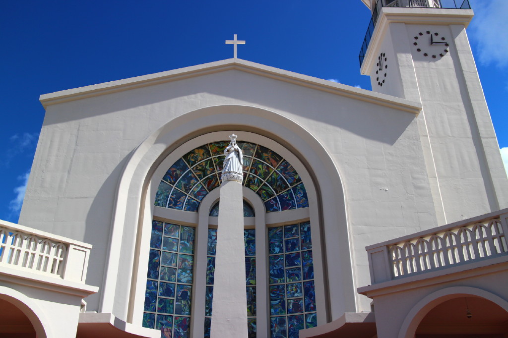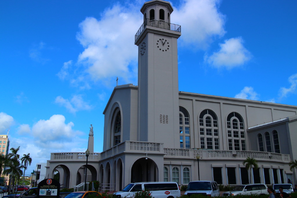 ハガニア観光ではほぼ中心の位置にありバス停のすぐ前です。ヨーロッパにあるような大聖堂で白亜の大きな建物が印象的です。1669年の建てられ当時のスペインの勢いが感じられるようです。礼拝時以外には中へも入れ入り口のDonationと書かれたボックスに1ドルをいれるといいようです。大きなステンドグラスは当時が偲ばれました。