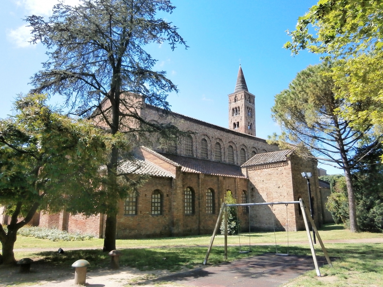 Trenitaliaの駅から町の中心部へ向かって歩き出すと、すぐ左側に見えるレンガ造りの教会です。ラヴェンナでは最も古い教会と言われています。
