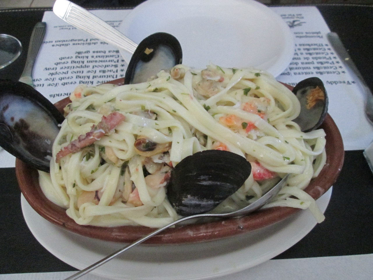 今回は海鮮パスタなど食べました、味はそこそこでした、ちょっとお値段は高めのようで隣接するお店より高かったです、昼時は観光客が多く来ているようです、スタッフは英語が出来ました。