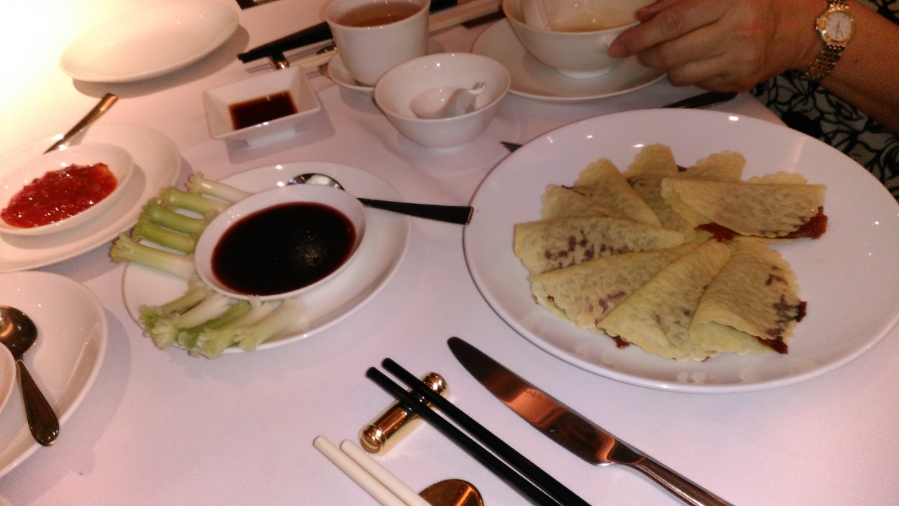 チャイムズ本店です。MRTサマセット駅近くのレイガーデンは、今はないそうです。私たちは、シンガポール滞在時に必ず訪れます。ランチ・ディナーとも、JCBプラザを通すと、$$75でコースがいただけます。メニューは、フカヒレスープ、北京ダック、エビ揚げ、豚肉とホタテ、白身魚、ヌードル、ビーフ、マンゴープリンで、全てが納得のお味でした。超オススメです。
