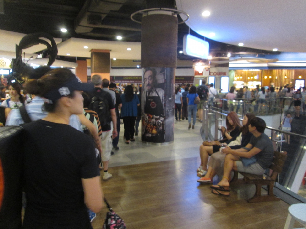 ターミナル21のフードコートはバンコクのなかでは安いので人気でした。デポジット用のカードを購入する受付にすでに長い行列ができていました。この後、お店の前でフードをピックアップするために並ぶことになります。