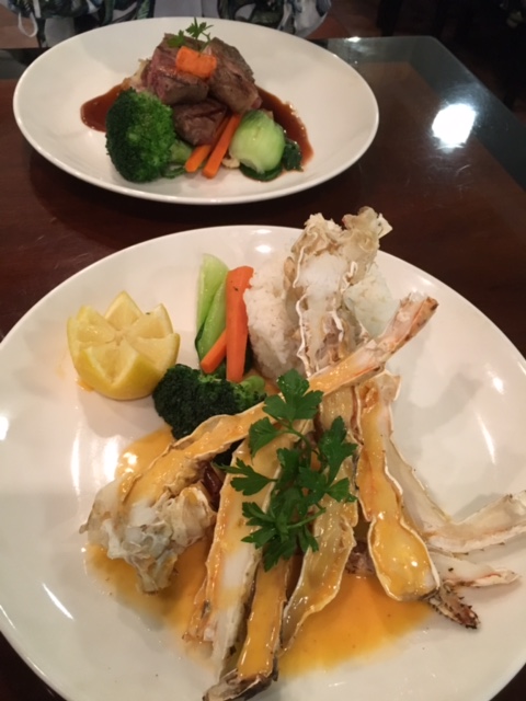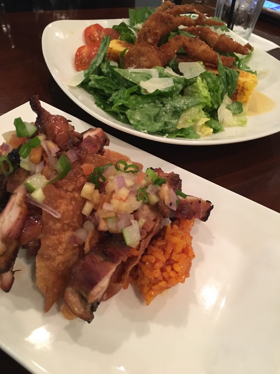 前菜的なやつと、サラダにメイン2つとドリンクで100ドル超えてましたー