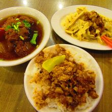 今回は魯肉飯と魯肉がかかった茹でたけのこ、排骨酥湯の3品頼んで100元しなかったと思います。お腹いっぱい食べられて、このお値段で大満足のランチでした。
