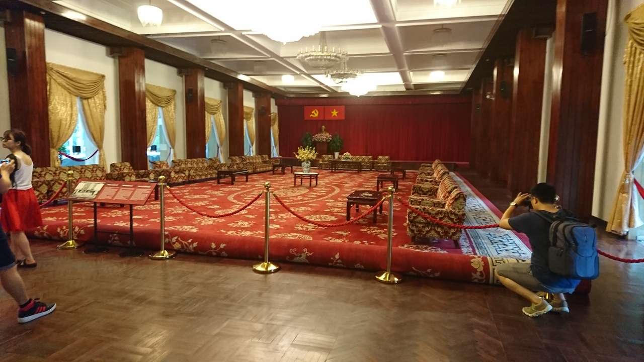 南ベトナムの大統領官邸ですが、建物自体は以前のものを参考に建て直しされたものです。中はとても広くて色々な偉い人の部屋などが色々あって次から次からへと立派な調度品が並んだ部屋を見て行く感じでした。敷地も広く緑豊かで戦車などもありましたが建物の中だけでも結構広いので半日ツアーに参加したのですが慌ただしい感じになってしまっていました。