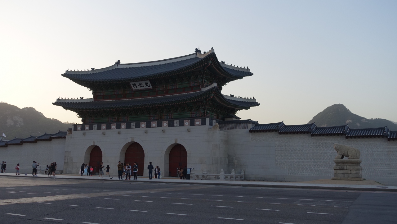 徳寿宮やソウル広場から景福宮に向かう大きな通りには、世宗大王像を初め、スケールの大きな像や建物が並んでいます。その中でも、存在感が際立つのが、この、光化門です。現在の門は、50年ほど前に復元されたものだそうですが、壮大さと気品のある形は、当時のままなのだろうと思います。少し離れた方が全体の壮麗さを感じられると思います。