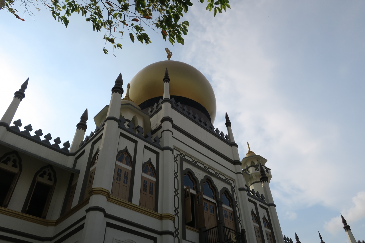 MRTブギス駅(ダウンタウン線と東西線)から歩いてすぐの「アラブストリート」にあるモスクです.観光旅行で買い物などをしていても,他民族他宗教国家シンガポールということを思い出させてくれます.そして異教徒でも中を見学できます.