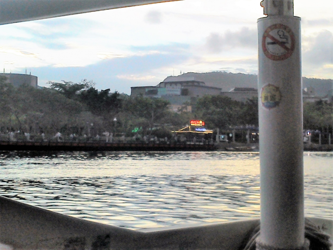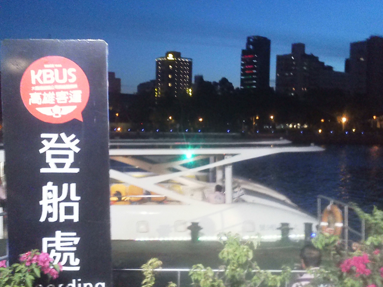 夕方から`愛之船`に乗って[愛河]をクルーズしました;5月の晴天時は河(運河)を散歩するにはちょっと,,。河(下流で?大河でした)は穏やかで高雄の夕暮れビル街/公園を映していました。乗船は30分ですが夕方から夜に! 船のガイド嬢が`誤解に因って愛河(=旧高雄川)と名付けられたのです`;え~(*_*;。
