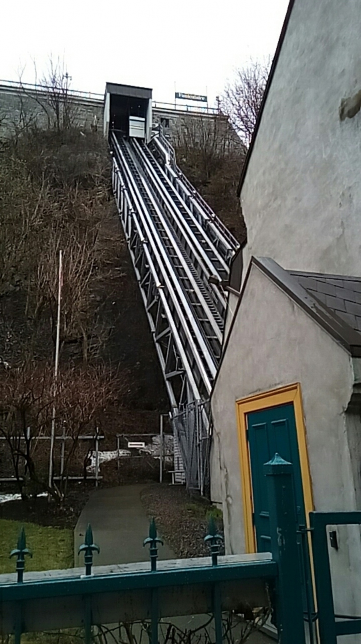 アッパータウンとロウアータウンを上下に結ぶケーブルカーみたいな乗り物です。一度だけアッパータウンに戻るときに利用しました。たしか3ドルでした。この乗り物使わないと首折り階段のほうを回って結構急な坂を上らないといけないのでちょっと歩きつかれたときには便利です。