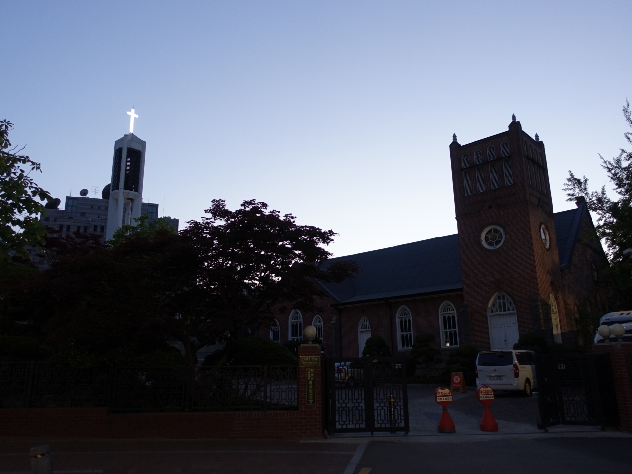 徳寿宮の正門の横に塀に沿った道があります。これが、トルダムキルとして親しまれている散策道です。大変雰囲気の良い道で、まっすぐ行くと左手にソウル市立美術館右手に貞洞第一教会が見えてきます。プロテスタントのきょうかいとしては韓国で一番古いという歴史ある教会ですが、その場の雰囲気にもとても合った、レンガ造りの美しい教会です。