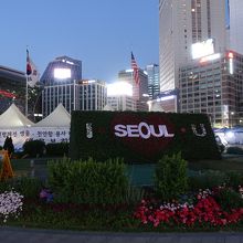 ソウル市庁舎、ソウル図書館の前の広場です。ワールドカップの時に整備されたという、芝生のきれいな広場です。大統領選挙直前だあったためか、スローガンか何かが書かれた看板や、陽が落ちていたのですが、テントの中で夜を過ごす人もいるようで、ゆっくり楽しむ雰囲気ではありませんでした。