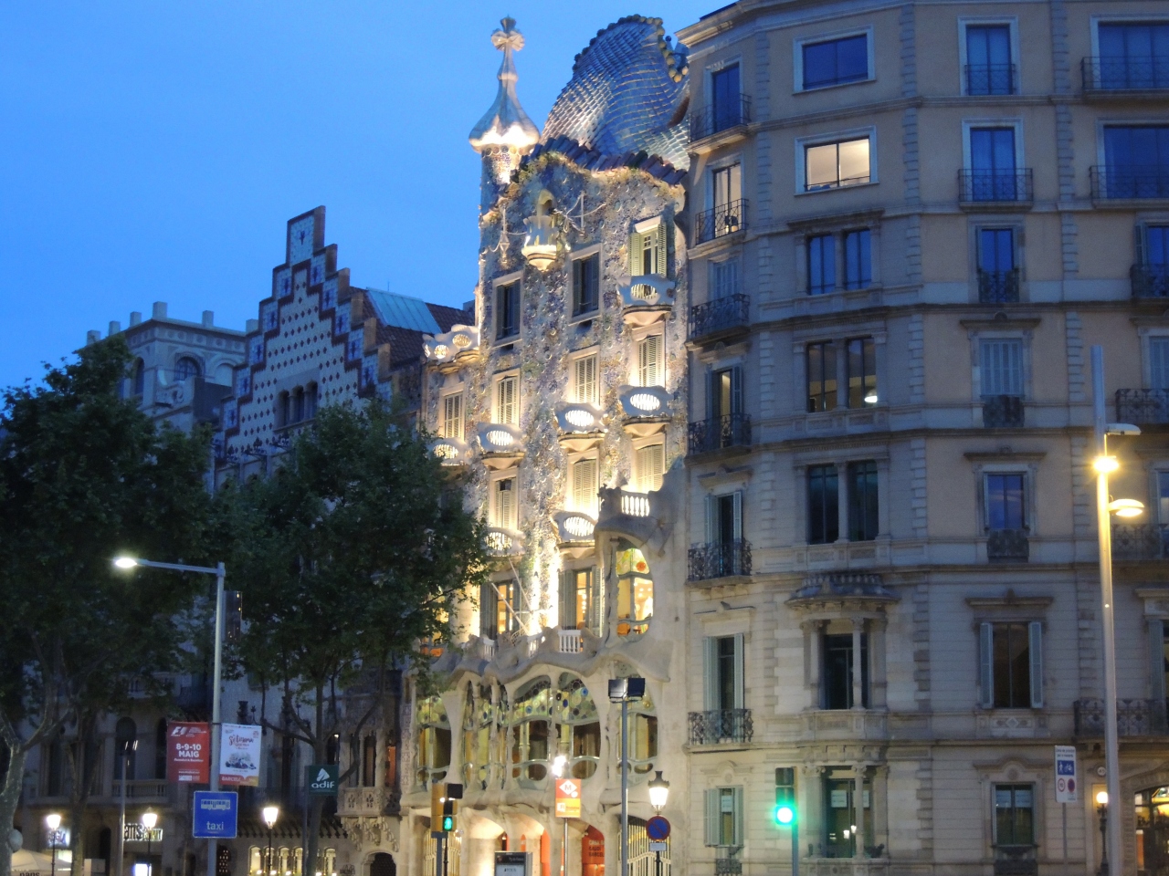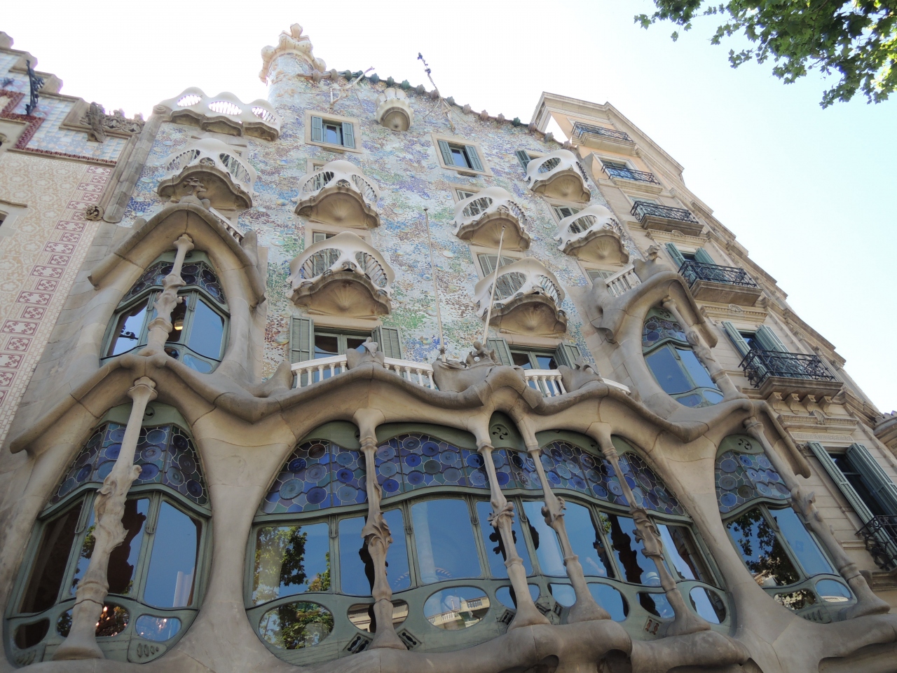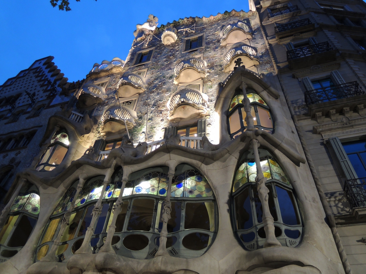カサミラに近く、同様に街の中心部グラシア通りに面しているこの建物には、計3度見に行く機会がありました。入場はしませんでしたが、ガウディの代表作の一つとして昼と夕方と翌日の昼間と3回見に行く機会があり、それぞれの時間帯で表情を変える姿を楽しめました。夜のライトアップもきれいです。隣の建物はカサアマトリェールという同じくモデルニスモ建築なのでセットで楽しめます。