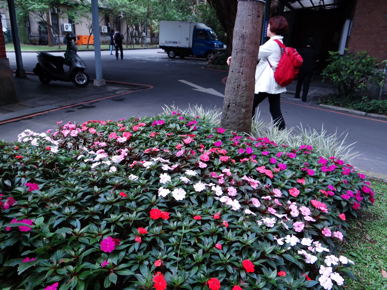 4月ごろは構内には花が咲き乱れます。ジョギングしている人の姿もみられます。