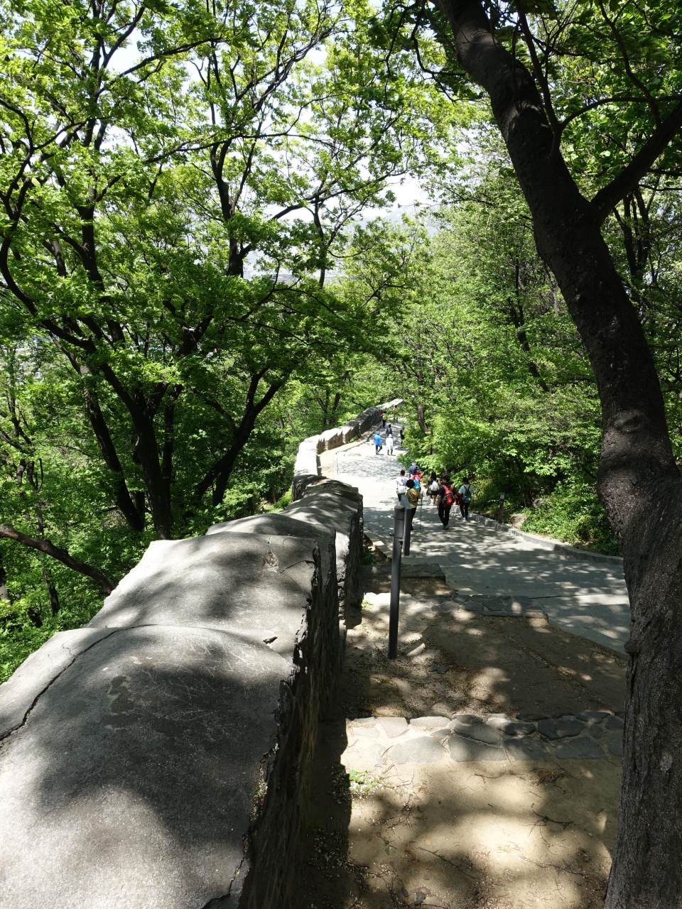 ソウル城郭という案内は、市内で何度か目にしまうが、ソウルタワーの展望台に上がると、その様子を一望することができます。また、下りは、ケーブルカーを使わずに散策路を下りていくと、ところどころで、城郭の石垣を近くで見ることもできます。