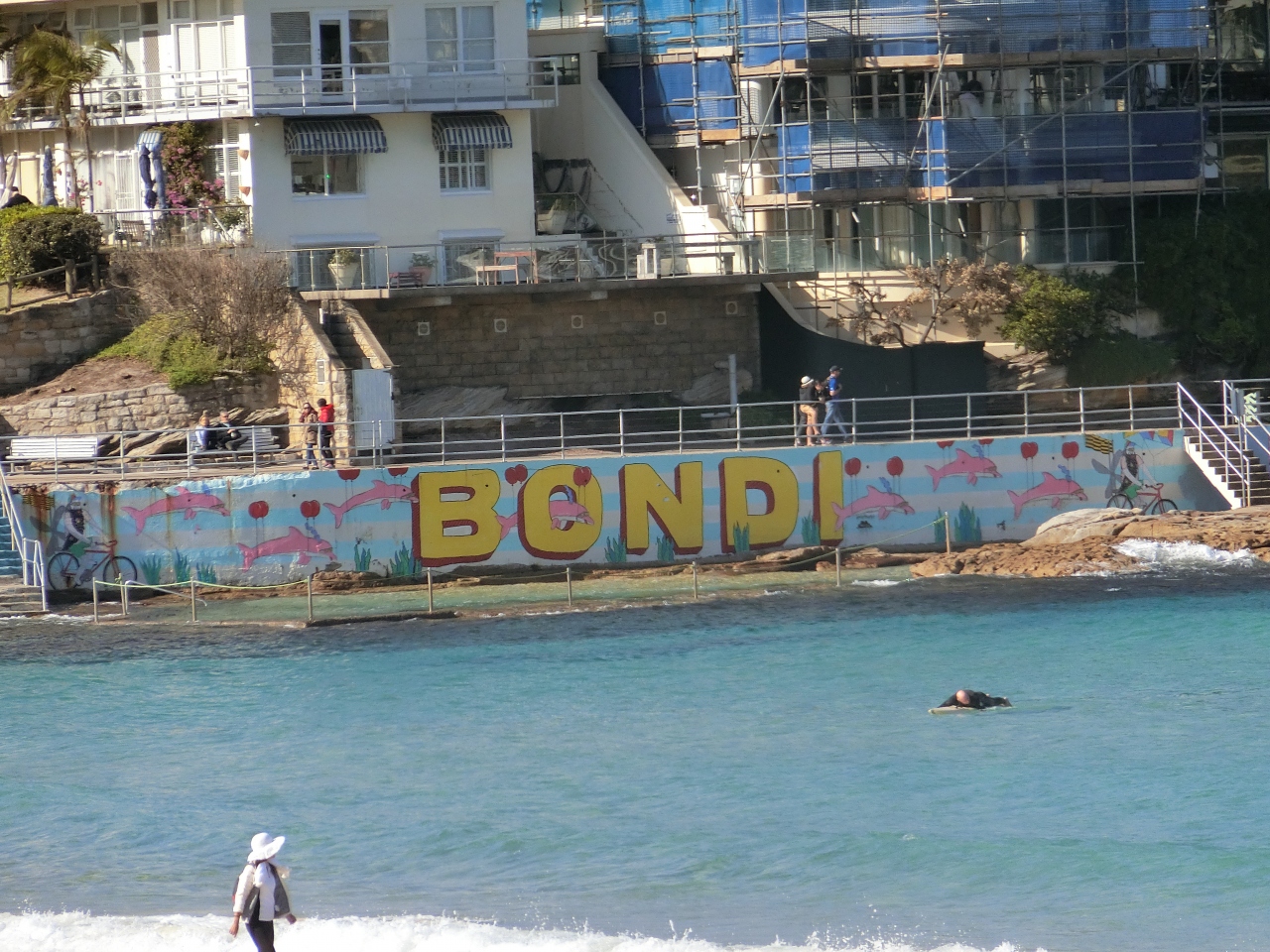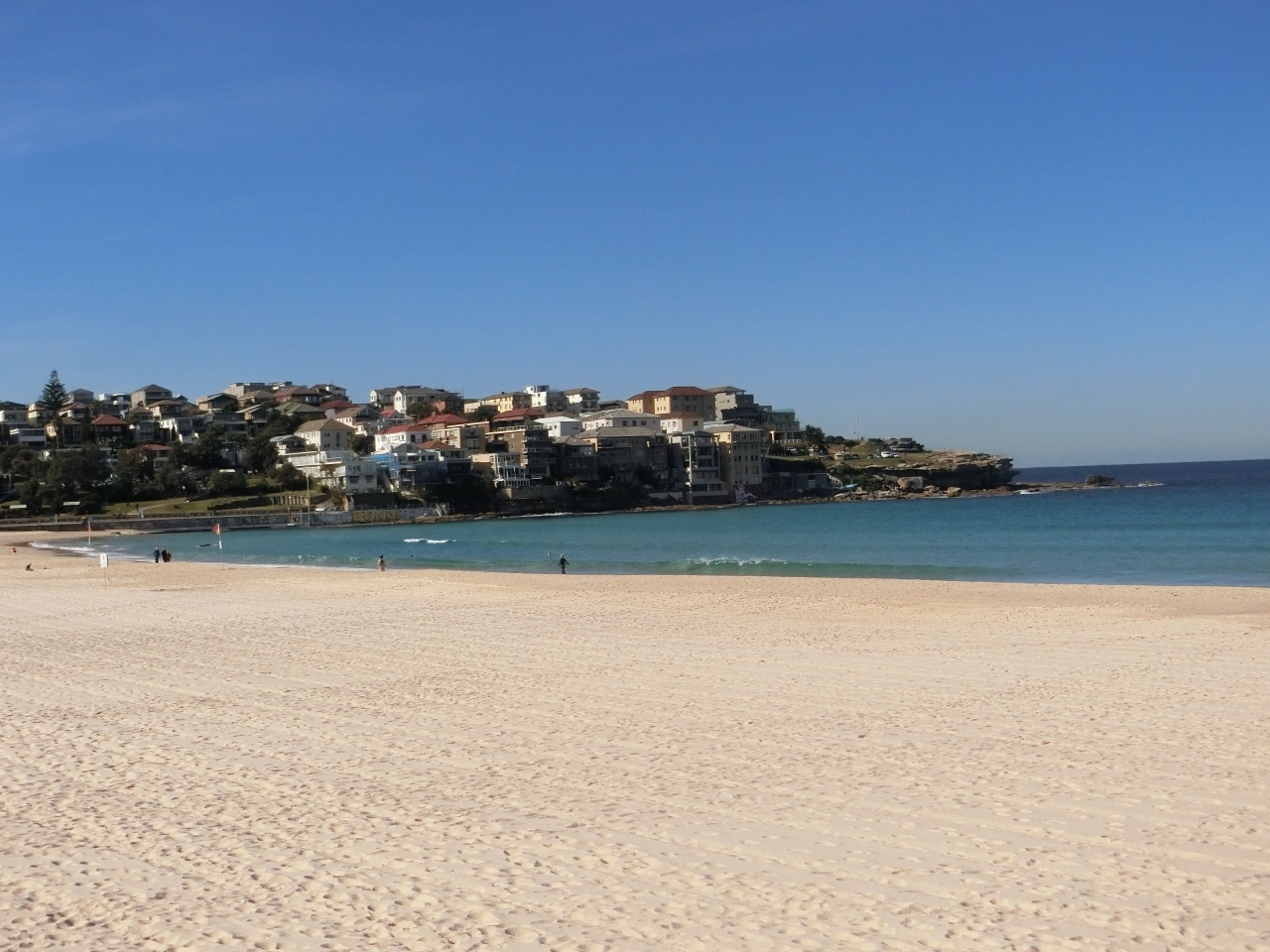 シドニー市内からバスで45分程でボンダイビーチへ到着です!シドニーとは全く違うのんびりムードで、ファッション雑誌の撮影か何かわかりませんが撮影クルーがビーチに居ます。ちょっと遠出気分で癒されました。シドニーより人も少なくのんびりムードでした。