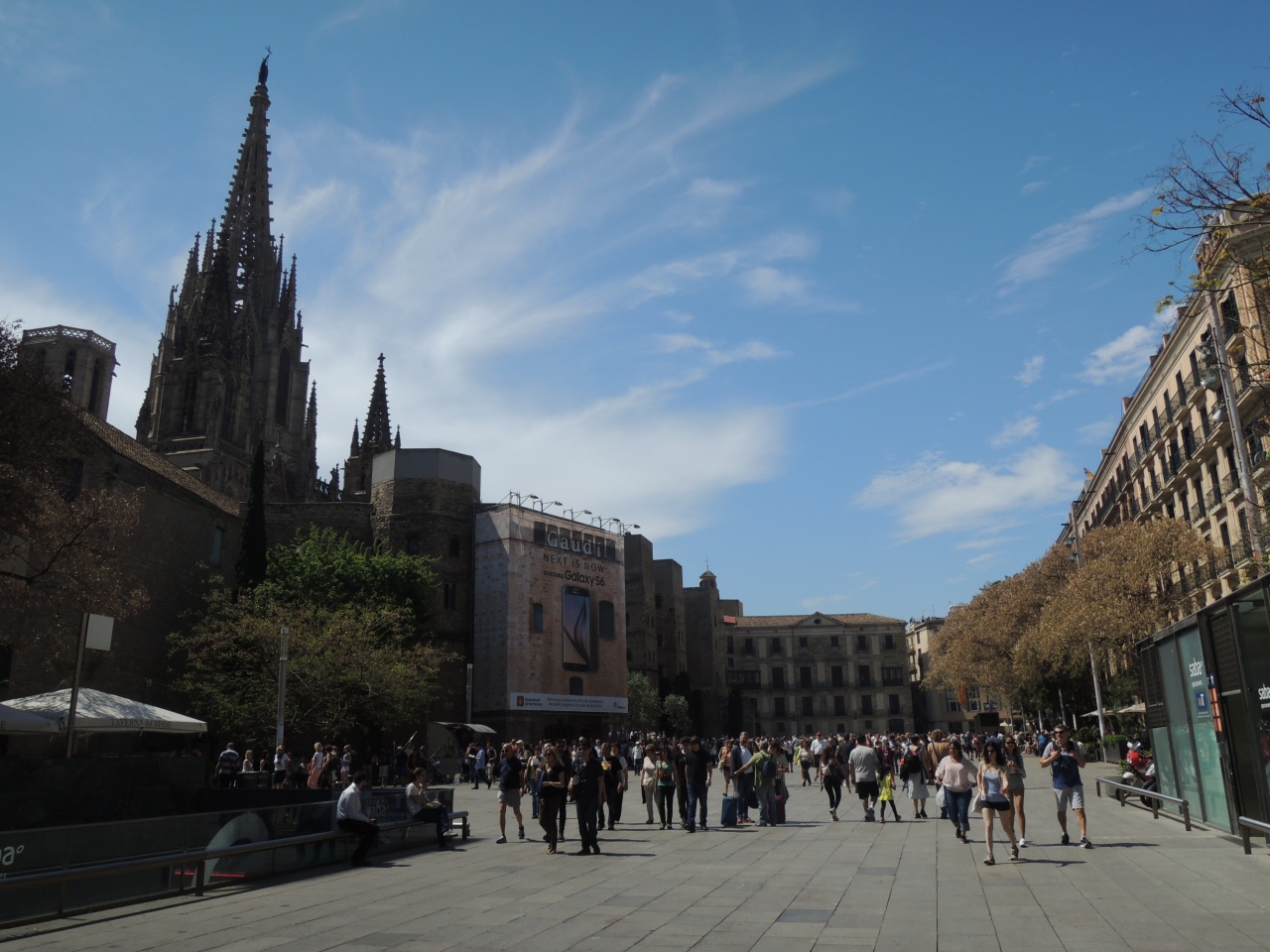 ゴシック地区と意識せずにいつの間にか何度も行くことになったのはこのゴシック地区でした。旧市街らしく入り組んでいる通りが多いですが、カタルーニャ広場からグラシア通り南東に下り、百貨店のエルコンテイングレス、カテドラル、サンタマリアデルピ教会、婦人靴のKOKUAまでゴシック様式の建物を眺めながら街歩きを楽しめる地区です。写真は、ゴシック地区のシンボルである、カテドラル前のセウ広場です。いつも人で賑わっていて、タイミングがあえばカタルーニャの民族舞踊「サルダーナ」も見れます。ただこの時は物凄く混雑していたのでスリなどの注意が必要です。