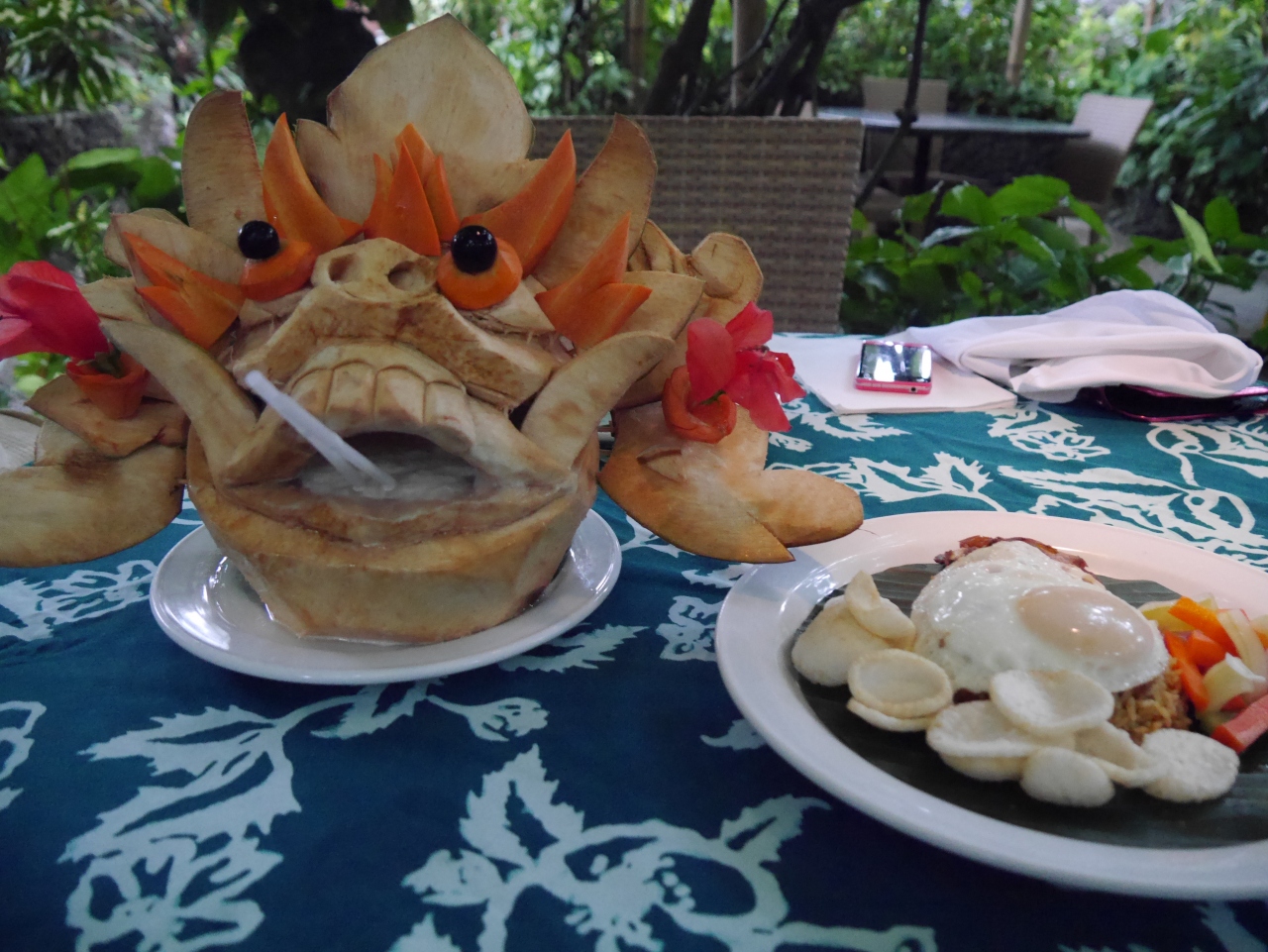 どうしても飲みたかったココナッツを成獣バロンの形に切り取って出してくれるドリンクを注文