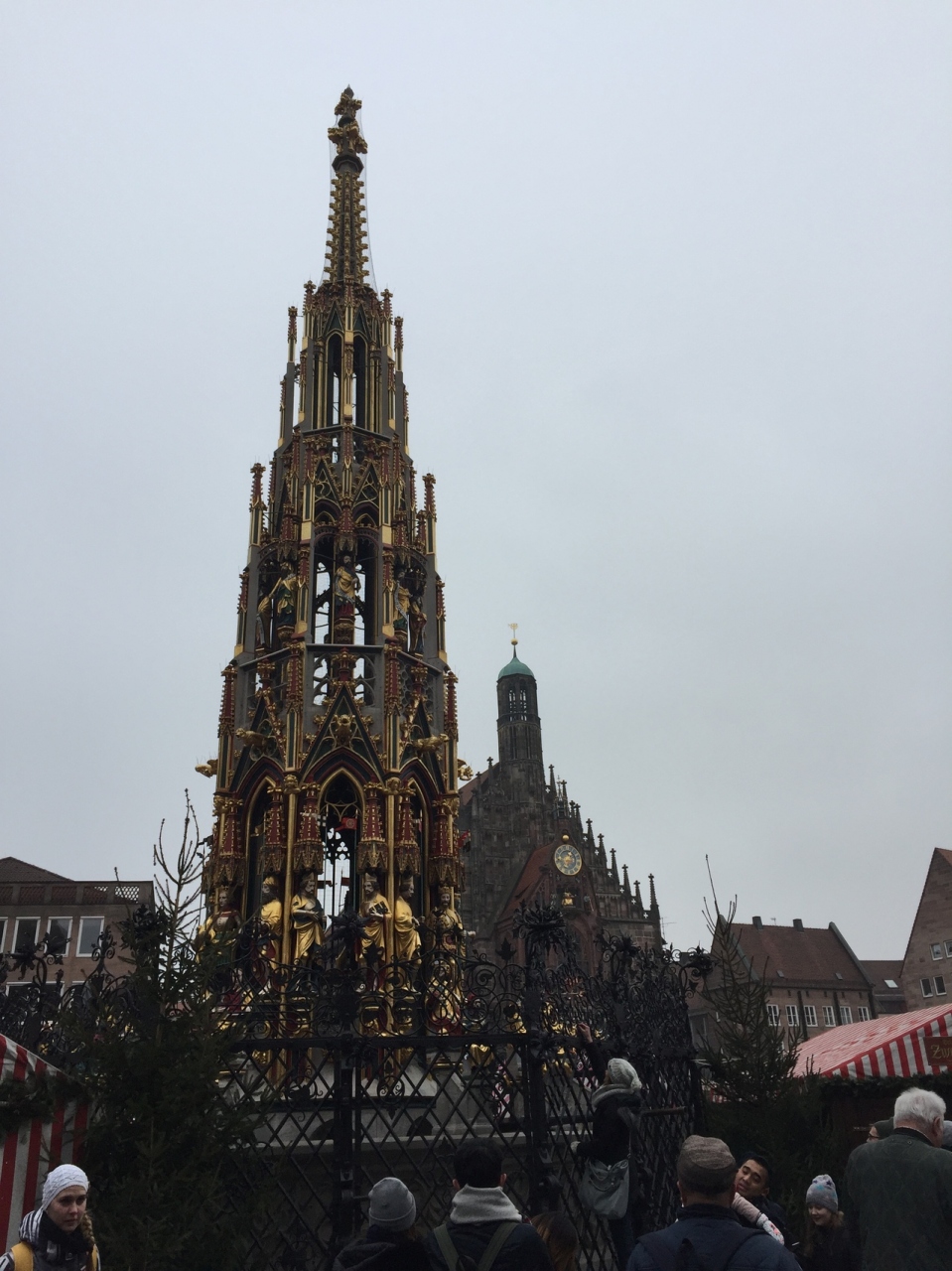 この泉には、継ぎ目のない黄金のリングが掛かっています。このリングを願い事をしながら三回廻すと願いが叶うと言われています。クリスマスマーケットシーズンのためか、多くの人が順番待ちをしていました。混む前に試されることがおすすめです。