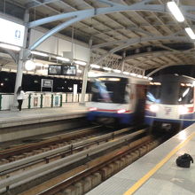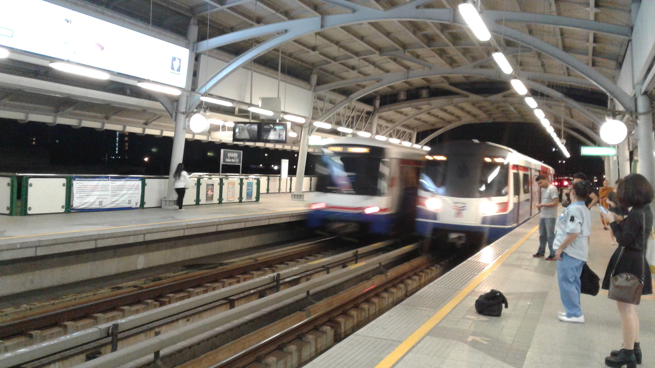 バンコクの高架鉄道BTSは以前の3両編成から4両編成になり、輸送量が大幅にアップしました。しかし、利用者も年々増え続け、朝夕のラッシュ時は相当込み合います。時間帯によっては、1~2本見送ることも覚悟しましょう。