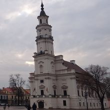 ヴィリニアウス通り沿いに旧市街を歩いて、最後に市庁舎広場に出ます。それまでは1本道です。広場は大きくはありませんが、カウナス旧市街の中心的な存在で、その広場の中心がこの旧市庁舎といった感じです。白鳥に例えられるだけあって、美しいです。