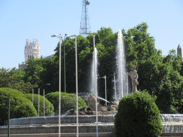 マドリッドは広場が多く、モニュメントも多い。これ、噴水ですが、最初は何の像だかわかりませんでした。珍しい形ですから。ネプチューンはローマ神話の海の神様。前のウェスティンパレスマドリッドに泊まったので、昼間も夜も眺めてました。